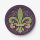 French Quarter style green fleur-de-lis elegant purple paper plate