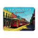 Bring the spirit of New Orleans to your space with this bold, comic-style illustration featuring a classic red streetcar cruising through the vibrant Canal Street area. With multicolored buildings, halftone skies, and rich cultural details, this poster captures the energy and charm of a historic cityscape. Perfect for lovers of urban art, travel nostalgia, or anyone seeking a splash of color and character in their decor.