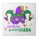 Mardi Gras mask with confetti and "New Orleans Louisiana"