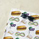Great for summertime fun! Beach towel features an original marker illustration of New Orleans Mardi Gras beads, mask, beignet, and shrimp po'boy sandwich.
