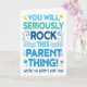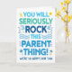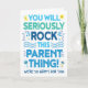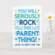 Congratulate the new Parents-to-be with this fun, colourful typography design card featuring the message, "You will seriously ROCK this parent thing! We're so happy for you!" Type is accented with watercolor baby item illustrations, music notes, stars and smiles. Inside has this message, but can be customised with your own personal message.