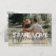 Same Love Different Date Wedding Typography Photo Postcard. Postponed Wedding Change the Date Modern Typography Photo Announcement Postcard. Due to unforeseen circumstances, you might need to change your wedding plans. Use these postcards to send a notification to your guests. Completely customise the information on the postcard for your own personal details.