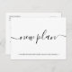 New Plan postcard wedding postponement announcement with modern calligraphy.