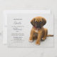 Announce your new fur baby in style with this cute photo announcement card! Featuring your puppy or kitten's photo full bleed, with modern sans serif and hand lettered script typography overlay. The back of the announcement invitation features an all over watercolor bone pattern on navy blue. Copyright Elegant Invites, all rights reserved.