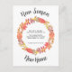 This autumnal moving announcement card is decorated with a watercolor fall wreath in russet shades.