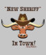 Personalise this Little Cowboy's "One of a Kind" New Sheriff In Town Boy's T-Shirt. It Features a Comical Longhorn Steer Wearing a Brown Sheriff's Western Cowboy Hat with a Big Gold Sheriff's Star...Surrounded by the Words...."New Sheriff In Town"!