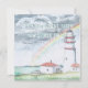 Watercolor lighthouse scene with clouds and rainbow. Promises for a bright future in retirement. Send good wishes in honour of your chosen honoree. Beautiful colours in aqua, green, and warm golden yellow.