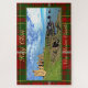 The Scottish Hay clan’s New Slains Castle, in Aberdeenshire, is shown against the background of the popular red and green family tartan. The names of the castle and clan are in a gold-colored font. Now a roofless ruin, it overlooks the North Sea east of Cruden Bay in Scotland.It was the stronghold of the Hay Clan and residence of the chief, the Earl of Earrol, through many generations. The Hay family owned property in the area from the 1400s, and King James II presented the earldom to Sir William Hay in 1453. It has undergone numerous renovations. The last time was in 1837 when it was re-constructed in a Scots Baronial style. The 20th Earl of Erroll sold the property in 1913, ending more than 300 years of ownership by the Hay family. It is now privately owned.
