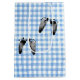 Cute twin baby boy teddy bears holding blue balloons and wearing bow ties on a white background with a blue gingham pattern.