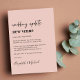 Minimal modern blush pink wedding change of venue announcement with "wedding update new venue" written in a mix of script and bold trendy typography (you can customise this to "new date," "smaller wedding," etc). Personalise your change of plans message, add your names in a signature-like script and add your wedding website on the reverse side or leave blank.