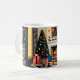 A vibrant, modern Christmas scene blending Memphis Style, New Wave 1980s shapes, Mondrian-inspired color blocking, and Roy Lichtenstein-style pop-art textures. This bold holiday scene features a decorated tree, glowing fireplace, and graphic patterns that make your greeting feel energetic, artistic, and unforgettable. Perfect for design lovers who appreciate a little flair with their festive cheer.