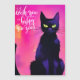 A dazzling New Year's magnetic postcard with playful artwork. Check out this black cat with green eyes and some dreamy urban vibes.
