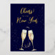 Cheers to the New Year Champagne Glasses Real Gold Foil Navy Holiday Card... Celebrate the New Year in style by sending greeting cards made with real gold foil. The text on front of the card is all in gold foil, with coordinating golden champagne glasses to emphasize your "Cheers!" greeting. On back of the card in golden text (printer's ink, not foil) is a heartfelt message you can keep as is or revise with your own wording... followed by your signature, also in gold. All text can be revised using the personalisation template. The background colour on both sides of the card is an elegant navy blue.