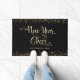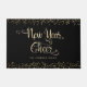 New Year Cheer Black Gold Script Snowflake Glitter Doormat