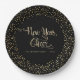 New Year Cheer Black Gold Script Snowflake Glitter Paper Plate