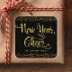 New Year Cheer Chic Gold Snowflakes Black Custom Square Sticker