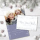 “New Year Cheer.” A playful visual of tiny silver snowflakes and dots and silver foil script typography in real foil decorate the front. On the inside, tiny white snowflakes and dots, along with your personal message and photo of your choice overlay a grey steel blue background and help you usher in the New Year. Feel the warmth and joy of the holiday season whenever you send this stylish and modern, personalised silver foil greeting card. Matching and coordinating envelopes, stickers, giftwrap and other products are also available in my “New Year Cheer Snowflakes & Script” store collection. Send this to someone special!
