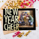 Send new year cheer with this fun and unique New Year's card. With its playful type in gold foil and its confetti background, it's the perfect way to wish friends and family a happy new year. The single photo is a slightly vertical shape and accommodates a variety of photos. The personalized text has room for a short message and family name or names. The back is in coordinating golden colors of confetti. This Happy New Year card is perfect for your holiday wishes this year!