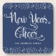 New Year Cheer Navy White Snowflakes Script Custom Coaster