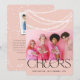 The back features a snapshot photo and a personalizable holiday message on a snowdots background.
