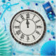Clock with Roman numerals on fireworks for New Year's Eve party.