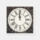 Clock with Roman numerals on fireworks with gold confetti falling for New Year's Eve party.