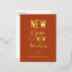 New Year New Adventures, holiday foil postcard. Features modern chic foil typography on terracotta orange.