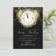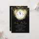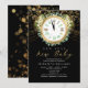 New Year New Baby Clock Gold Black Baby Shower Invitation