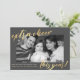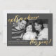 New Year Photo Pregnancy Announcement. Design features single black and white photo of the parents to be and typography script ''extra cheer this year'' in trendy gold lettering. Personalise further with your message, due date etc. Perfect for wishing your loved ones a Happy New Year and announcing your pregnancy.