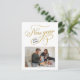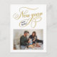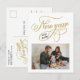 New Year pregnancy announcement photo postcard. Design features elegant typography script ''new year, new baby'', photo and details / message on the back.