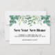 This botanical moving announcement card is decorated with watercolor eucalyptus and greenery.