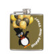 This whimsical penguin is celebrating the New Year with these festive balloons. The design is on the front of the flask. On the back there's an image of balloons.