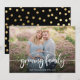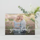 Announce your pregnancy and wish your family and friends Happy New Year. Design features single photo, typography script and your due date.