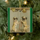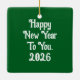 Cute, vintage picture of two pug dogs ringing bells for the New Year, is featured on this square ceramic ornament for 2026. The front of this ornament shows the pug dogs. The back of the ornament states, "Happy New Year To You. 2026", in white lettering on a green background. A sweet ornament for your tree or give as a gift!