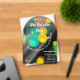 New Year’s Eve party invitation with blue, yellow green bubbles on a black and transparent background.