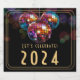 Let's celebrate 2024 sparkling Wine Label. Easy to change to current year. Sparkling Disco balls and dansing colour rings of light flairs decorates the label and is perfect for the party theme and product.