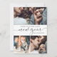 The phrase "new year" in modern black script with three of your favourite photos in a collage and a black and white confetti pattern on the back
