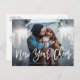 Send New Year's wishes to family and friends. This elegant design features white brush script and a lovely photo. The text and colours can be personalised.