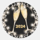 New Years Champagne Glasses Glowing String Lights Classic Round Sticker