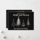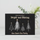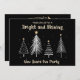 New Years Eve Black and Gold Holiday Party Invitation. The invitation is decorated with modern white Christmas Trees on a black background. The text includes: Please Join Us For A Bright and Shining New Years Eve Party. The reverse text includes: The Date, Time, Location, Host and RSVP Info. To personalize, simply insert your details into our easy template, replacing the sample text.