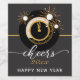 New Years Eve CHEERS Black & Gold Clock Wine Label