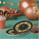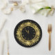 Design features bright, sparkly gold confetti in the round and a clock in Roman numerals. Blackface/gold hands.
