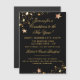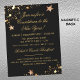 Black background with bright gold stars on top & bottom corners, attractive script and typography text fonts, decorate this 4.25" x 5.6" portrait invitation, with a magnet back, for your New Year's Eve party. Also available in 5"x7" size. Easy to edit all text using the Template provided. You can leave any text/lines blank to remove. High quality, full-colour, full-bleed printing. A standard white envelope is included, check "none" for a reduced price. See "About This Product" at side for more information.