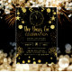 Join us for an elegant New Year's Eve celebration! Sparkle into the year ahead with our Black & Gold Glitter Party. Dress to impress and let's welcome the New Year in style!" You can personalise the texts.