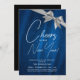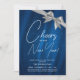 New Years Eve Silver Navy Sparkle Sequin Bow Invitation