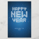 Customisable New Year flyer template for New Year's Eve party or event, featuring a modern design with glittering white typography on blue sky with stars.