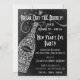 Break Out the Bubbly - New Year's Eve Party Invitation in Black & White. Pretty lacy style champagne bottle decorated with love birds, grapes, and vines. Great for Engagement, New Years, or any Celebration. Customise this invitation with your own text. Original Illustration by pj_design.