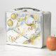 This is a standard metal lunchbox that appears to work just fine. We designed this box ourselves with an uploaded photo and custom text on the front and back. It looks absolutely beautiful except the front of the lunchbox is not centered like it shows in the photo. The print borders don't align with the inset flat part of the box where the preview photo online showed it perfectly centered in there. The back looks nice and centered though.