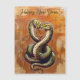 A festive New Year’s card conveying the wish to find true love in 2025. Two snakes gracefully intertwined in the shape of a heart symbolise harmony, tenderness, and the unity of two souls. The warm golden-orange background creates an atmosphere of celebration, warmth, and new beginnings. Small hearts around add a touch of romance and heartfelt emotions.