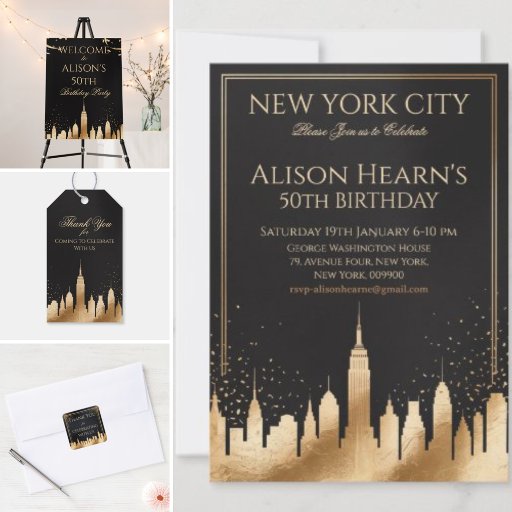 Fully editable and easy to personalize, this modern New York City invitation works beautifully for 30th, 40th, or 50th birthdays, glam girls’ nights, and luxury evening gatherings. Create a bold first impression with a sophisticated skyline design that captures the excitement of a rooftop celebration in the city that never sleeps.